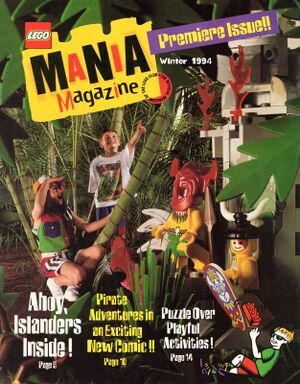 The first issue of LEGO Mania Magazine was published in the United States in late 1994, replacing what would have been the Winter 1994 issue of Brick Kicks. Along with the new branding, the magazine's size was doubled from eight pages to sixteen.[1]